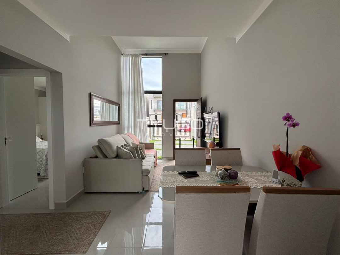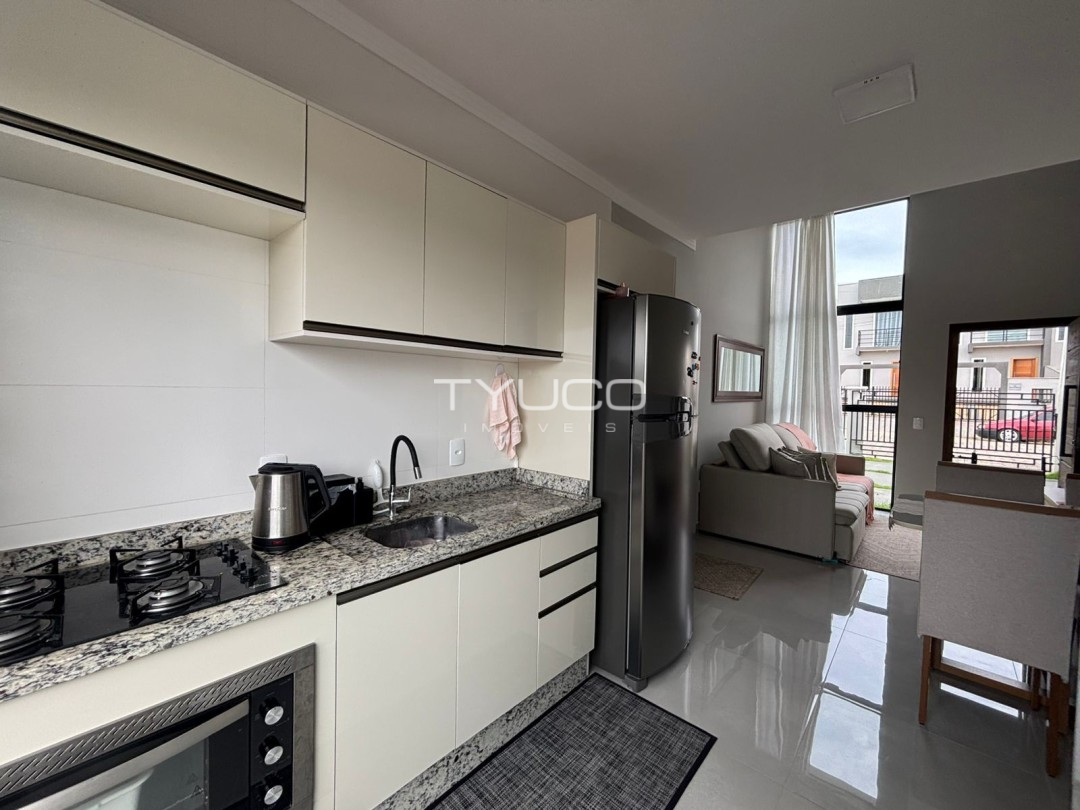 A sala de estar é convidativa, com espaço ideal para momentos em família ou receber amigos, conectada à cozinha, que foi planejada para maximizar o uso do espaço, oferecendo praticidade e estilo.